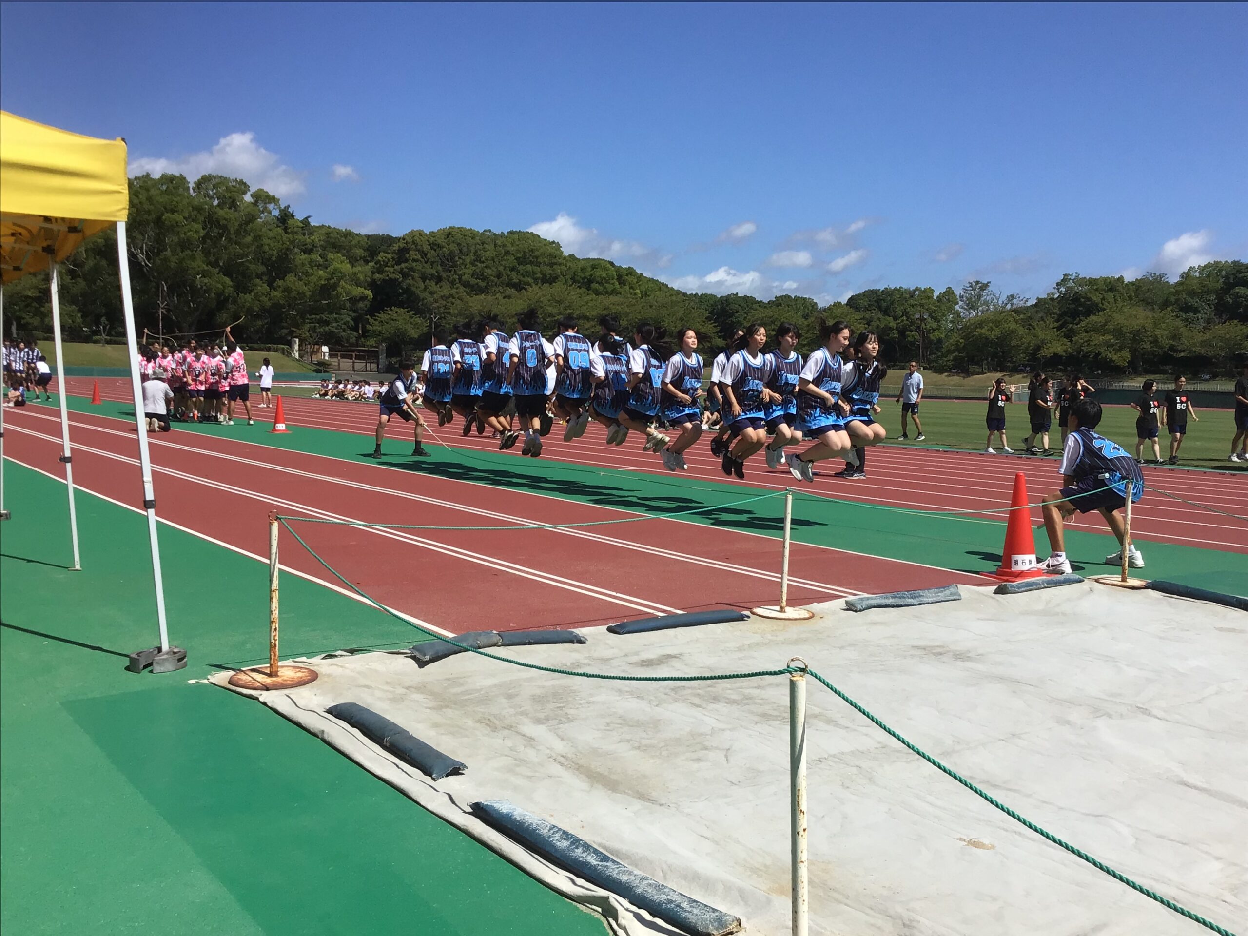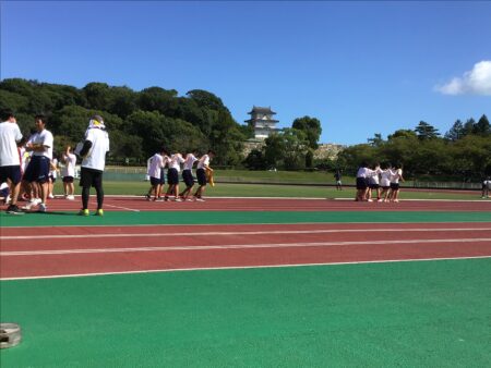 例年にない残暑の中、明石公園陸上競技場で体育大会が開催されました。